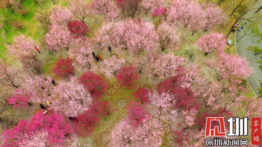 江蘇省揚州市蜀岡西峰生態(tài)公園內(nèi)梅花競相綻放,五顏六色的梅花樹為古城大地披上七彩春裝,美不勝收。