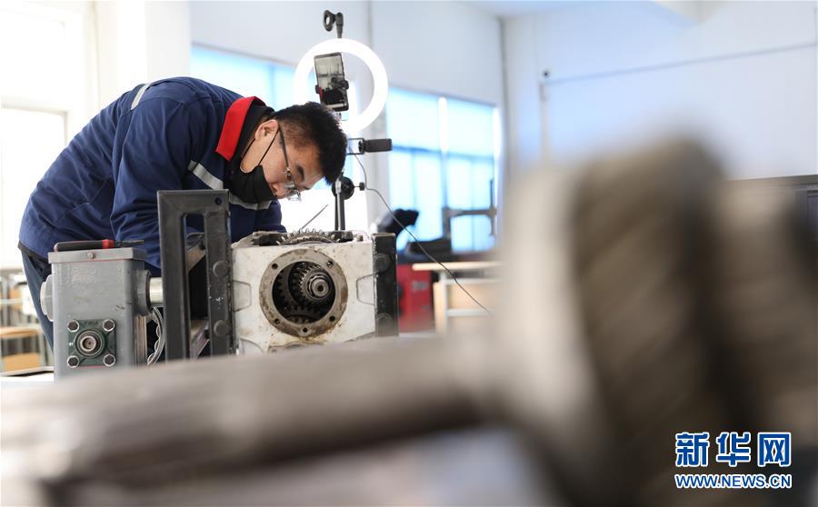 3月4日,職教城內(nèi)的鞍山市交通運(yùn)輸學(xué)校的高峰老師為學(xué)生進(jìn)行變速器檢修實(shí)訓(xùn)網(wǎng)絡(luò)授課。遼寧省鞍山市職教城內(nèi)的各類職業(yè)教育學(xué)校從3月2日恢復(fù)網(wǎng)絡(luò)授課以來,教師們設(shè)置了豐富多彩的課程,提高1萬余名學(xué)生線上學(xué)習(xí)的積極性。新華社記者姚劍鋒 攝