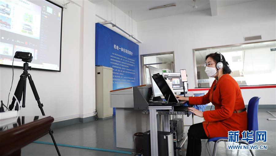 3月4日,職教城內的鞍山市技師學院的王曉娜老師為學生進行機電一體化網絡授課。遼寧省鞍山市職教城內的各類職業(yè)教育學校從3月2日恢復網絡授課以來,教師們設置了豐富多彩的課程,提高1萬余名學生線上學習的積極性。新華社記者 姚劍鋒 攝