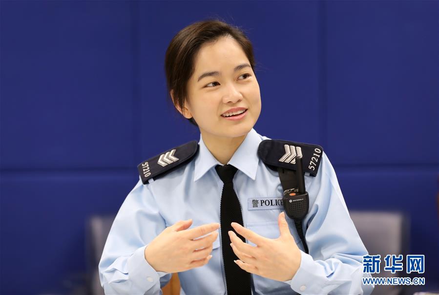 香港西區(qū)警署負責警民關系工作的警長陳Sir接受記者采訪(1月30日攝)。新華社記者李鋼攝