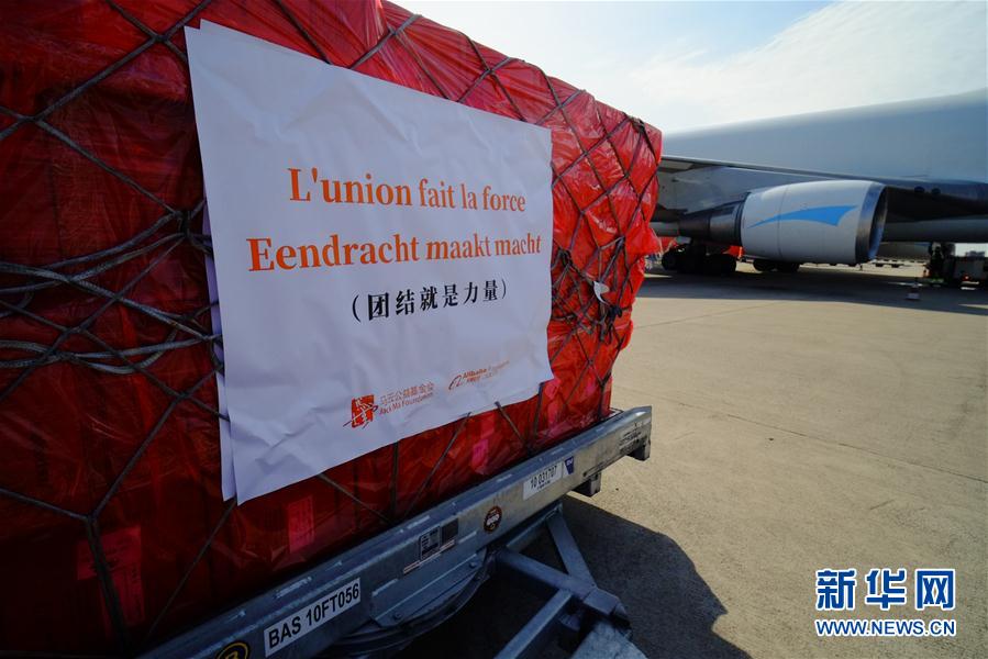 來自中國的30萬只口罩當(dāng)?shù)貢r間16日中午運(yùn)抵比利時列日機(jī)場。 新華社記者 張鋮 攝