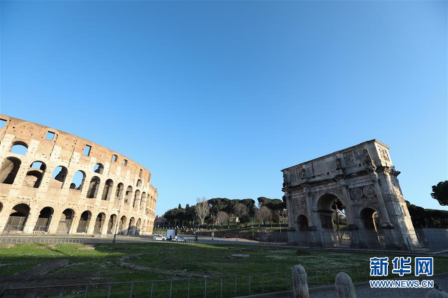 3月16日,在意大利首都羅馬,斗獸場因疫情關(guān)閉。新華社記者程婷婷攝