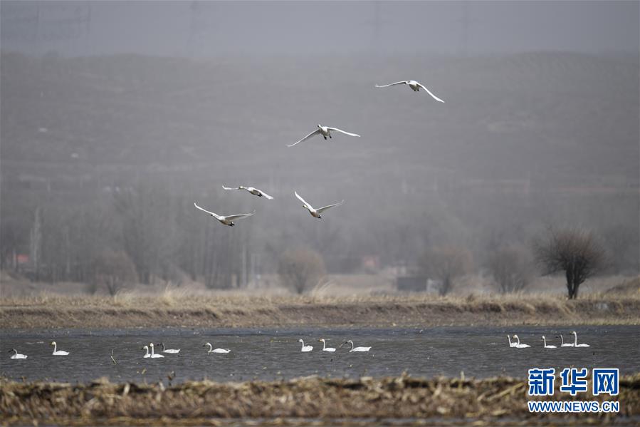 這是3月18日在準格爾旗大路鎮(zhèn)的黃河淺灘上拍攝的候鳥。 新華社記者 于嘉 攝