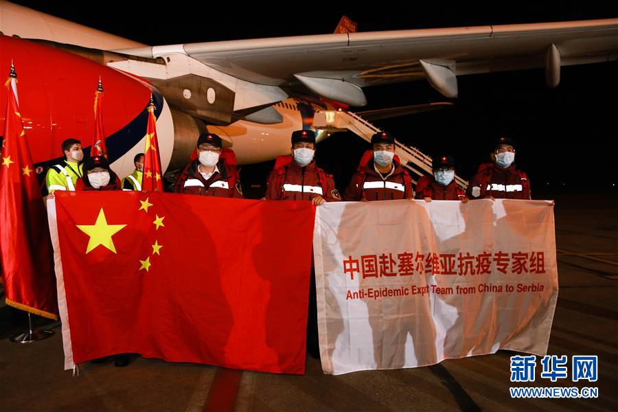 3月21日,在塞爾維亞首都貝爾格萊德,中國援助塞爾維亞抗疫醫(yī)療專家組走下飛機。 中國援助塞爾維亞抗疫醫(yī)療專家組一行6人21日晚乘專機抵達塞首都貝爾格萊德,由中國政府捐贈的一批醫(yī)療物資同機抵達。 新華社記者 石中玉 攝
