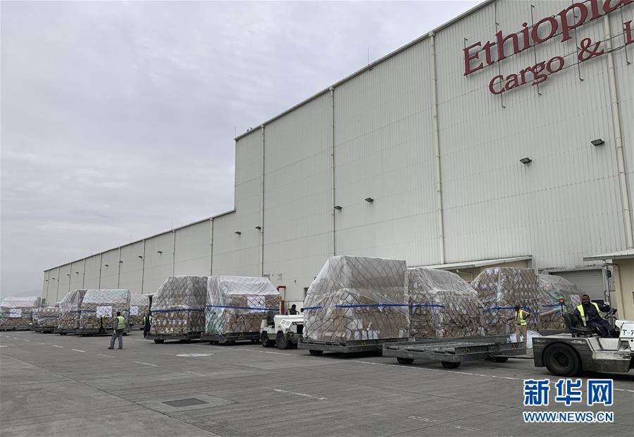 3月22日,在埃塞俄比亞首都亞的斯亞貝巴國際機(jī)場,工作人員將中國援助的抗疫物資運(yùn)下飛機(jī)。歷時(shí)10小時(shí)飛行,滿載著來自中國抗疫物資的埃航貨運(yùn)包機(jī)22日上午抵達(dá)埃塞俄比亞首都亞的斯亞貝巴的國際機(jī)場,這是馬云公益基金會和阿里巴巴公益基金會捐贈非洲的部分醫(yī)療物資,用于支援非洲54國抗擊疫情。新華社記者王守寶攝