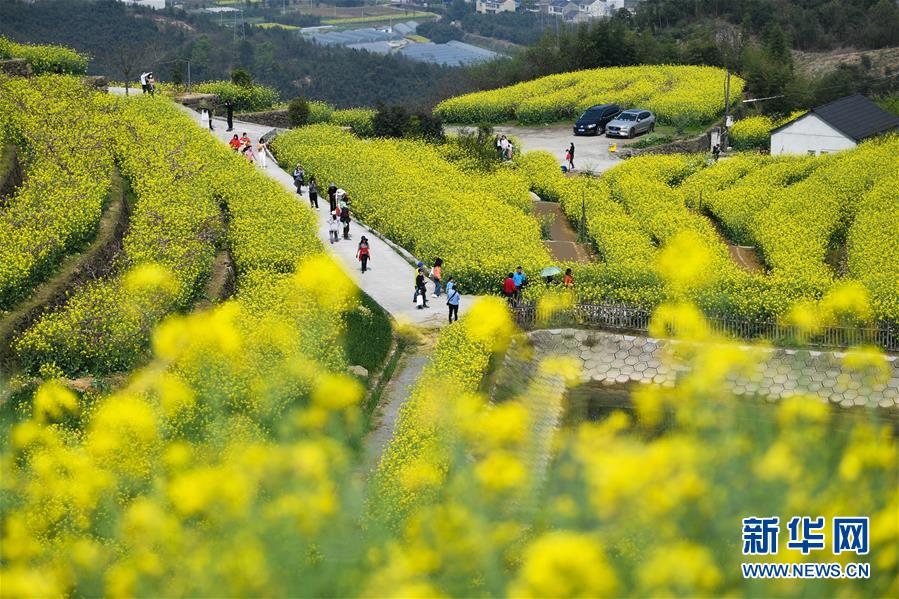 3月25日,游客在新登鎮(zhèn)上旺村黑山頂?shù)挠筒嘶êV杏斡[。
