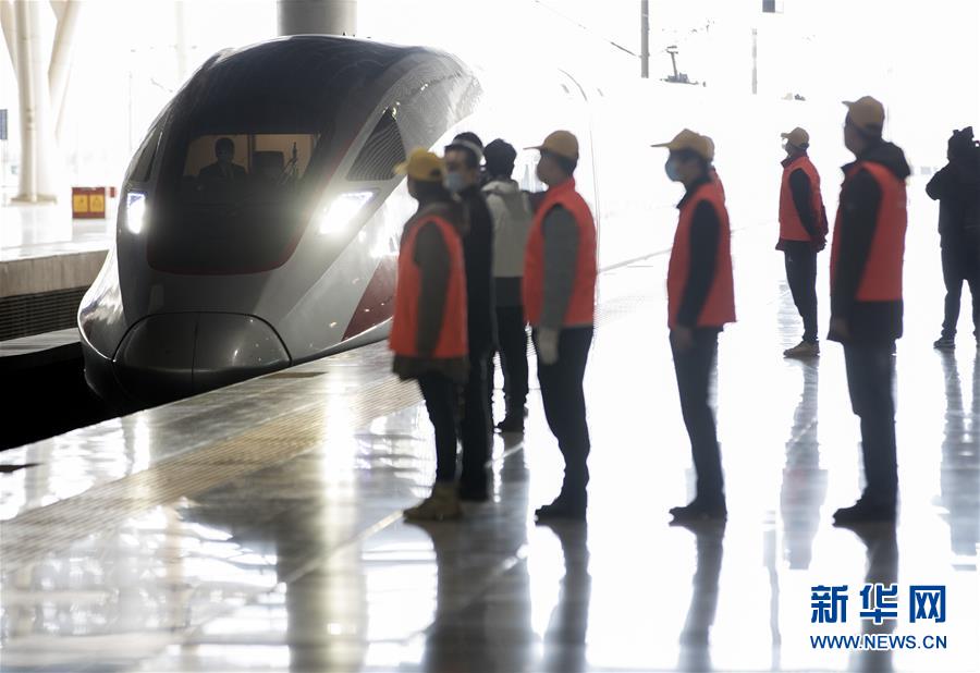 3月28日,工作人員迎來徐徐進(jìn)站的G1112次列車。新華社記者費(fèi)茂華攝