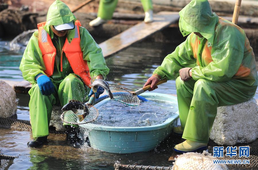 漁民在海洋牧場(chǎng)上分揀捕獲的海魚(yú)(7月8日攝)。新華社記者姚劍鋒攝