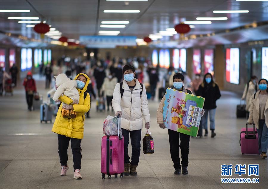 3月28日,乘坐從利川始發(fā)的D5998次列車的旅客到達漢口站后出站。新華社記者肖藝九攝