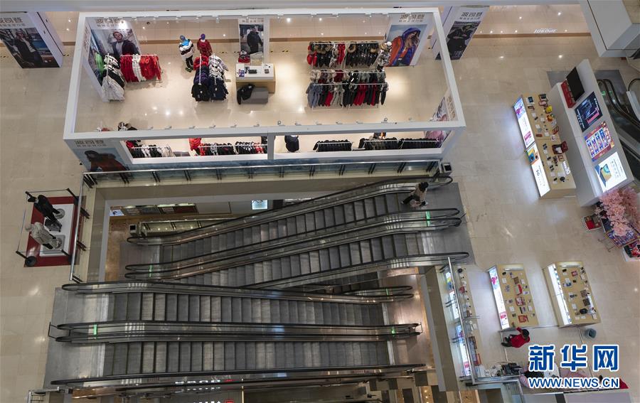 3月30日,在武商世貿(mào)廣場(chǎng),一位顧客乘坐滾梯。當(dāng)日,武漢市多家商場(chǎng)開(kāi)門迎客。新華社記者費(fèi)茂華攝