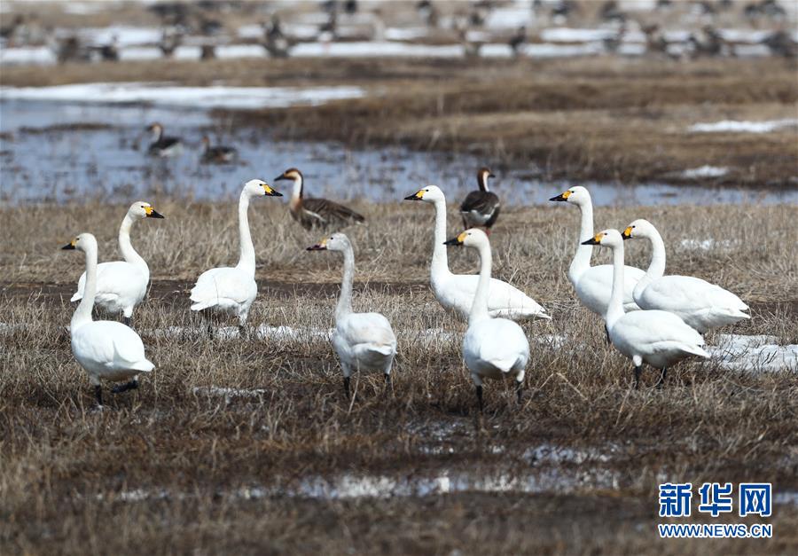 這是4月1日在張北縣黃蓋淖國家濕地公園拍攝的候鳥。 新華社記者楊世堯攝