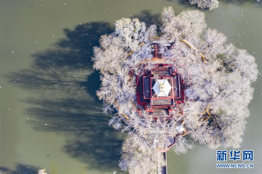 4月5日拍攝的拉薩宗角祿康公園雪景(無(wú)人機(jī)照片)。新華社記者普布扎西攝