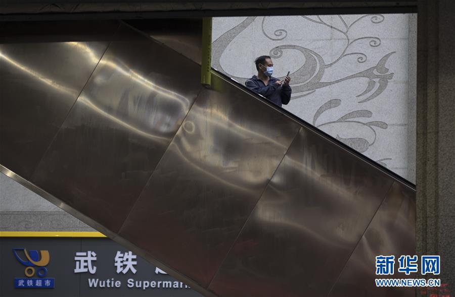 4月7日晚,一名旅客在武昌火車站拍攝站內(nèi)情景。新華社記者 費(fèi)茂華 攝