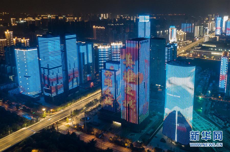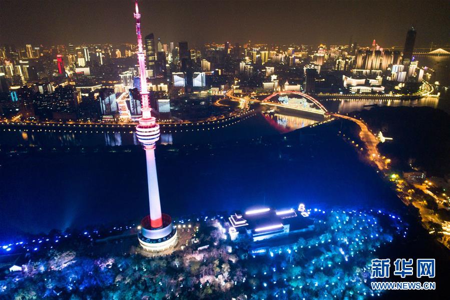 4月8日零時起,武漢市正式解除離漢離鄂通道管控措施,全市景觀照明開啟(無人機(jī)拍攝)。新華社記者程敏攝