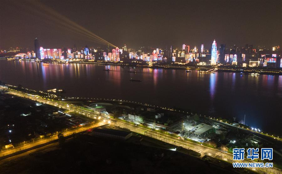 4月8日零時(shí)起,武漢市正式解除離漢離鄂通道管控措施,全市景觀照明開啟(無人機(jī)拍攝)。新華社記者程敏攝