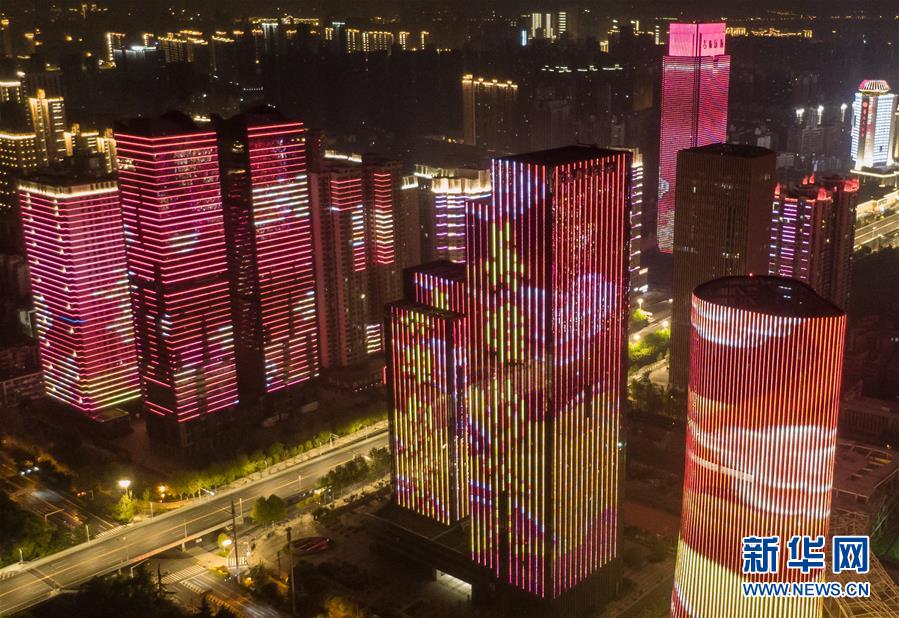 4月8日零時(shí)起,武漢市正式解除離漢離鄂通道管控措施,全市景觀照明開啟(無人機(jī)拍攝)。新華社記者程敏攝
