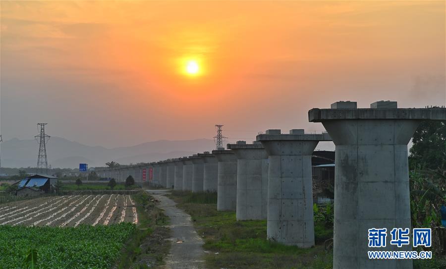 位于西雙版納傣族自治州景洪市的橄欖壩特大橋在夕陽下格外美麗(4月12日攝)。新華社記者秦晴攝