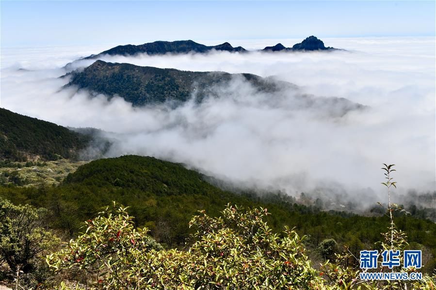 站在武夷山國家公園最高峰黃崗山遠望云霧繚繞的群峰(4月1日攝)。新華社記者姜克紅攝
