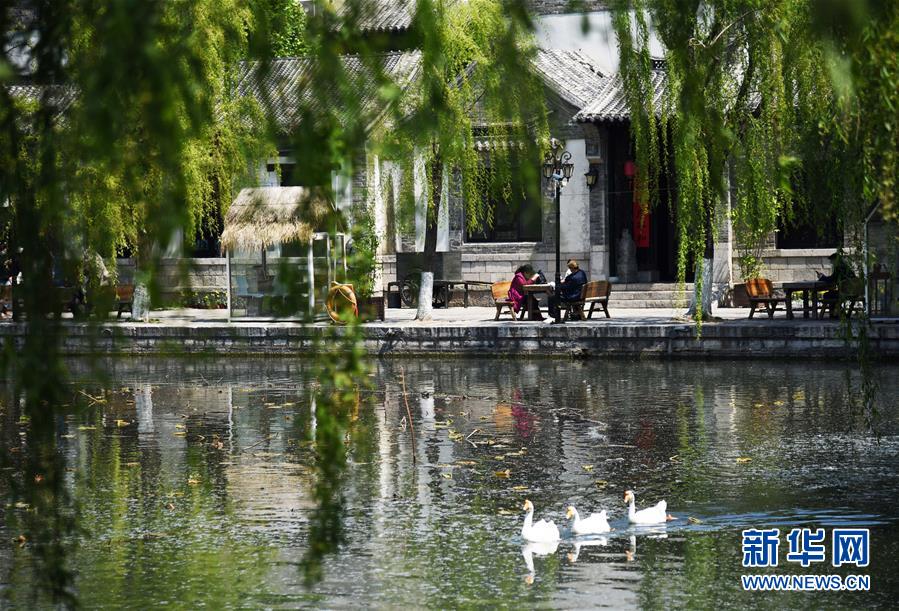 4月13日,游客在濟(jì)南百花洲歷史文化街區(qū)休閑。新華社記者王凱攝