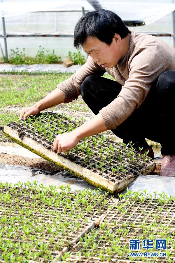 4月13日,在洛南縣麻坪鎮(zhèn)三興村辣上天育苗合作點(diǎn),村民張紅在檢查育苗情況。新華社記者陶明攝