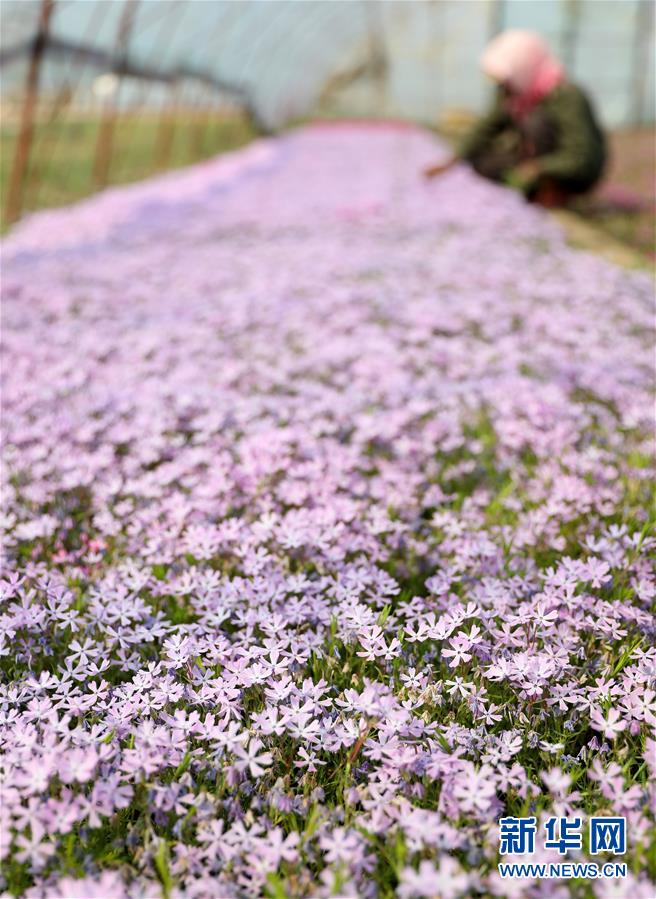 4月13日,在八角臺街道雅化村花圃內,花農為宿根花卉除草。新華社記者姚劍鋒攝