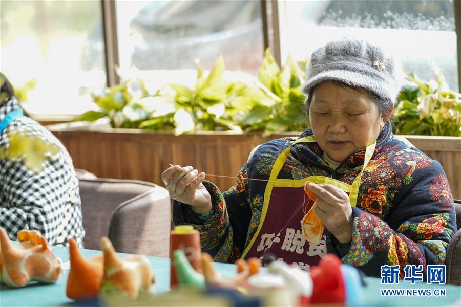 4月8日,在重慶石柱中益鄉(xiāng)巾幗扶貧工坊,當(dāng)?shù)貗D女縫制土家族風(fēng)情布老虎。近年來(lái),重慶市石柱土家族自治縣中益鄉(xiāng)在重慶市婦聯(lián)的幫助下,以當(dāng)?shù)胤沁z傳統(tǒng)技藝作為結(jié)合點(diǎn),把扶貧與扶志、扶智相結(jié)合,通過引進(jìn)外來(lái)文創(chuàng)企業(yè)對(duì)留守婦女、貧困及殘疾人群進(jìn)行刺繡培訓(xùn),設(shè)立巾幗扶貧工坊等多種形式,幫助當(dāng)?shù)卮迕駥?shí)現(xiàn)就業(yè)增收。據(jù)介紹,巾幗扶貧工坊運(yùn)行以來(lái),為當(dāng)?shù)仃懤m(xù)開發(fā)出土家族布老虎、手提袋、餐墊繡邊、創(chuàng)意相框等一系列文創(chuàng)產(chǎn)品,幫助參加巾幗扶貧工坊的留守婦女和貧困村民實(shí)現(xiàn)月均增收近千元。新華社記者劉潺攝