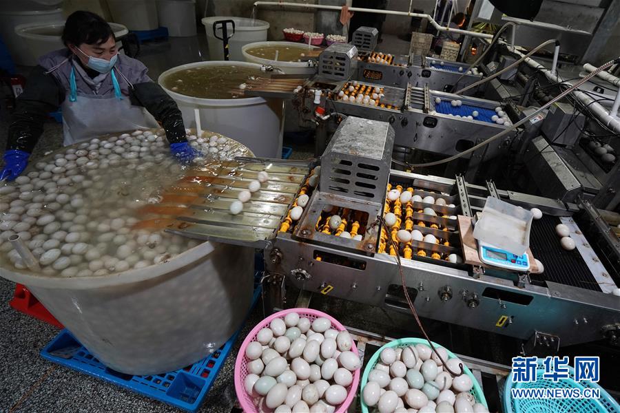 江蘇高郵鴨集團的工作人員在生產(chǎn)車間內清洗分揀鴨蛋(4月15日攝)?!案哙]鴨蛋”是江蘇高郵的特色農(nóng)業(yè)名片。近年來,當?shù)卦诹挤N繁育、生態(tài)養(yǎng)殖、產(chǎn)品加工等方面加大力度,推動高郵鴨蛋品牌化建設,讓小鴨蛋成為帶動農(nóng)戶致富的大產(chǎn)業(yè)。2019年,高郵市共計生產(chǎn)熟制鴨蛋產(chǎn)品近11.2億枚,年產(chǎn)值近17.68億元。新華社記者韓瑜慶攝