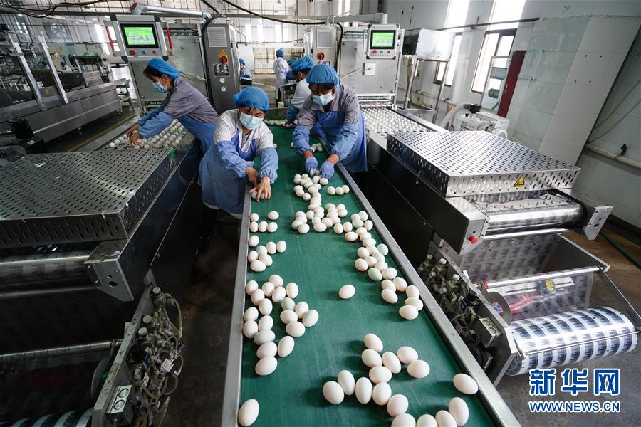 4月15日,在江蘇高郵鴨集團,工人在生產(chǎn)線上忙碌?!案哙]鴨蛋”是江蘇高郵的特色農(nóng)業(yè)名片。近年來,當?shù)卦诹挤N繁育、生態(tài)養(yǎng)殖、產(chǎn)品加工等方面加大力度,推動高郵鴨蛋品牌化建設,讓小鴨蛋成為帶動農(nóng)戶致富的大產(chǎn)業(yè)。2019年,高郵市共計生產(chǎn)熟制鴨蛋產(chǎn)品近11.2億枚,年產(chǎn)值近17.68億元。新華社記者季春鵬攝