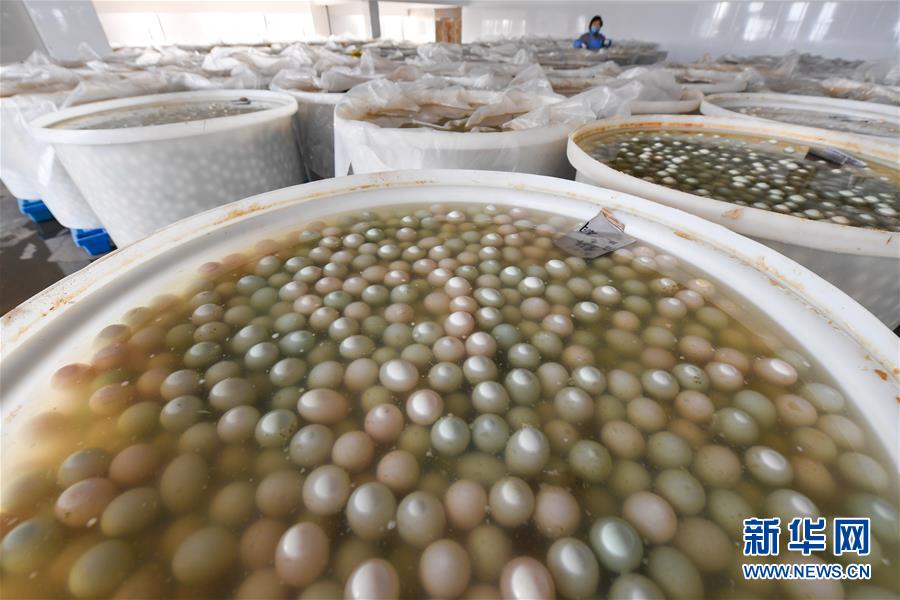 在江蘇高郵鴨集團生產(chǎn)車間,腌制好的鴨蛋準備進行清洗包裝作業(yè)(4月15日攝)?!案哙]鴨蛋”是江蘇高郵的特色農(nóng)業(yè)名片。近年來,當?shù)卦诹挤N繁育、生態(tài)養(yǎng)殖、產(chǎn)品加工等方面加大力度,推動高郵鴨蛋品牌化建設,讓小鴨蛋成為帶動農(nóng)戶致富的大產(chǎn)業(yè)。2019年,高郵市共計生產(chǎn)熟制鴨蛋產(chǎn)品近11.2億枚,年產(chǎn)值近17.68億元。新華社記者李博攝