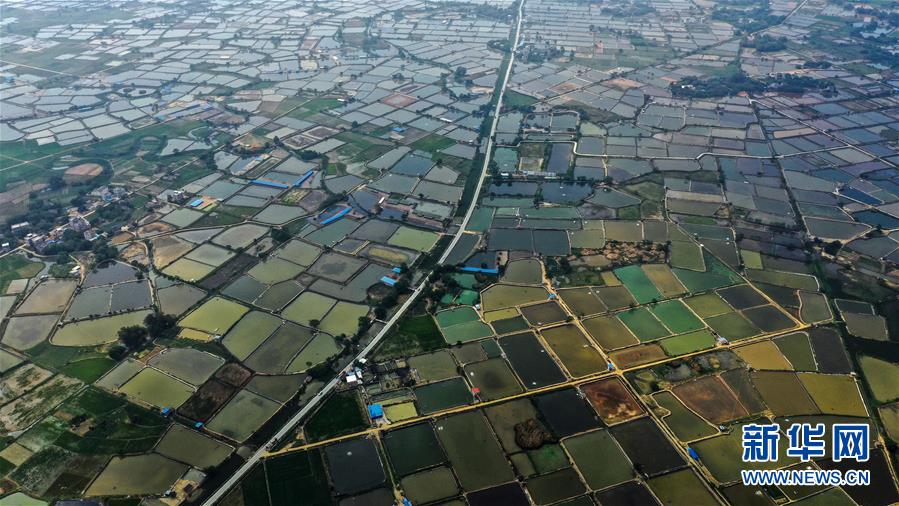 新華社照片,合浦(廣西),2020年4月21日鳥瞰廣西合浦春色這是4月21日拍攝的合浦縣境內(nèi)的春日風光(無人機照片)。暮春時節(jié),從空中俯瞰廣西北海市合浦縣大地,河流、稻田、蝦塘、道路、村莊星羅棋布、色彩斑斕,美不勝收。新華社記者張愛林攝