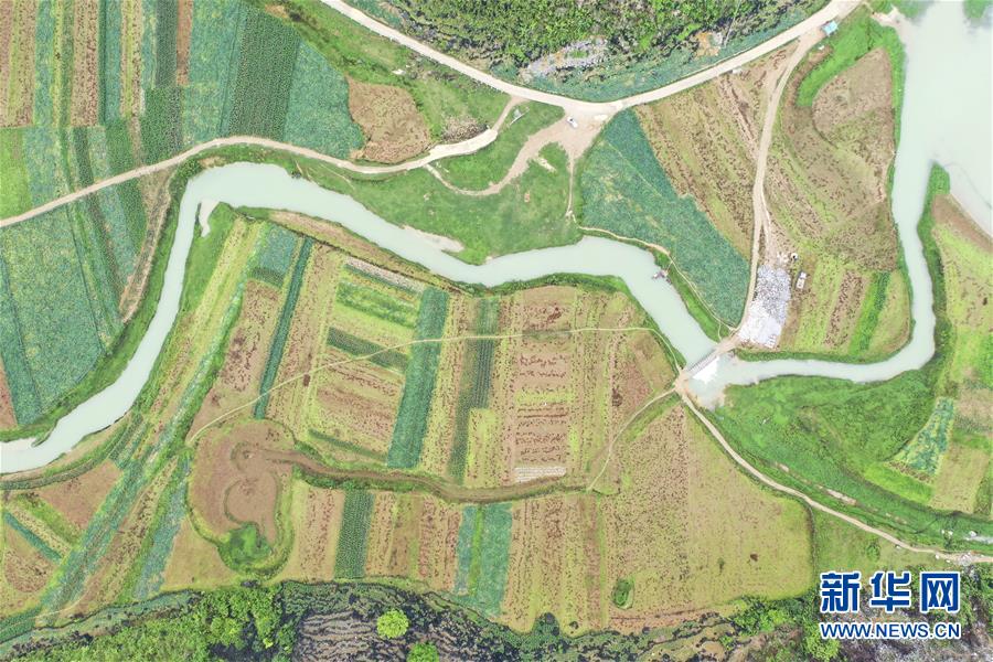 廣西隆安縣南圩鎮(zhèn)田園景色(4月23日攝,無人機照片)。新華社記者曹祎銘攝