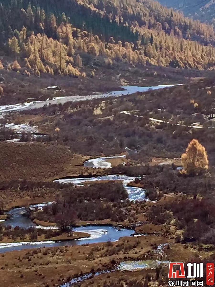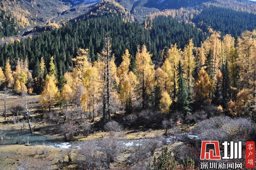 溝里有大片的落葉松、杜鵑和云杉林,雪山、海子、濕地、河流等景觀應(yīng)有盡有,唯獨(dú)沒有公路,只能沿木棧道徒步游覽。李仁奇攝