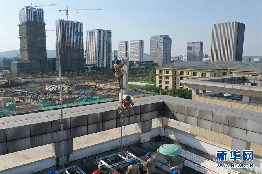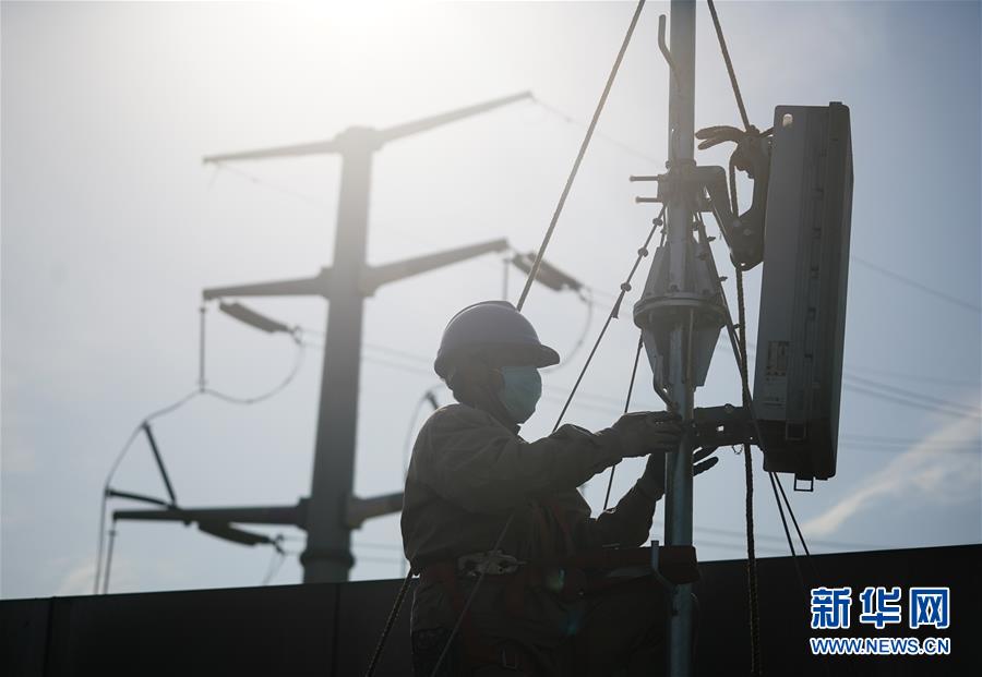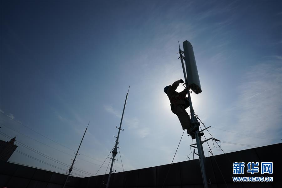 4月25日,在南京220千伏城南河變電站屋頂,工人在架設(shè)5G設(shè)備。當日,三大通信運營商的2座5G、3座4G基站建設(shè)工作在南京220千伏城南河變電站屋頂有序展開。在變電站內(nèi)建設(shè)基站可有效利用電網(wǎng)資源,縮短建設(shè)周期,節(jié)約建設(shè)成本。新華社記者季春鵬攝