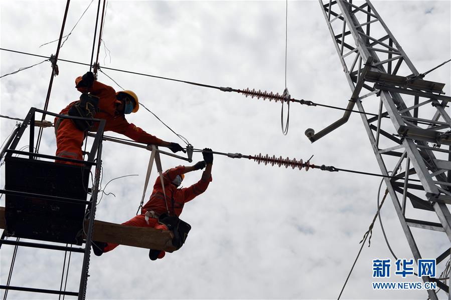 4月25日,在福建省寧德市屏南車站,施工人員開展接觸網(wǎng)調(diào)整作業(yè)。中鐵電氣化局集團(tuán)上海公司推動(dòng)衢寧鐵路福建段通信工程、信號(hào)工程、電力工程、電氣化工程各環(huán)節(jié)協(xié)同復(fù)工復(fù)產(chǎn),目前來(lái)自河北、河南、四川等國(guó)內(nèi)10個(gè)省的900多名員工返崗就業(yè)。衢寧鐵路北起浙江省衢州市,南至福建省寧德市,全長(zhǎng)379.2公里。新華社記者彭張青攝