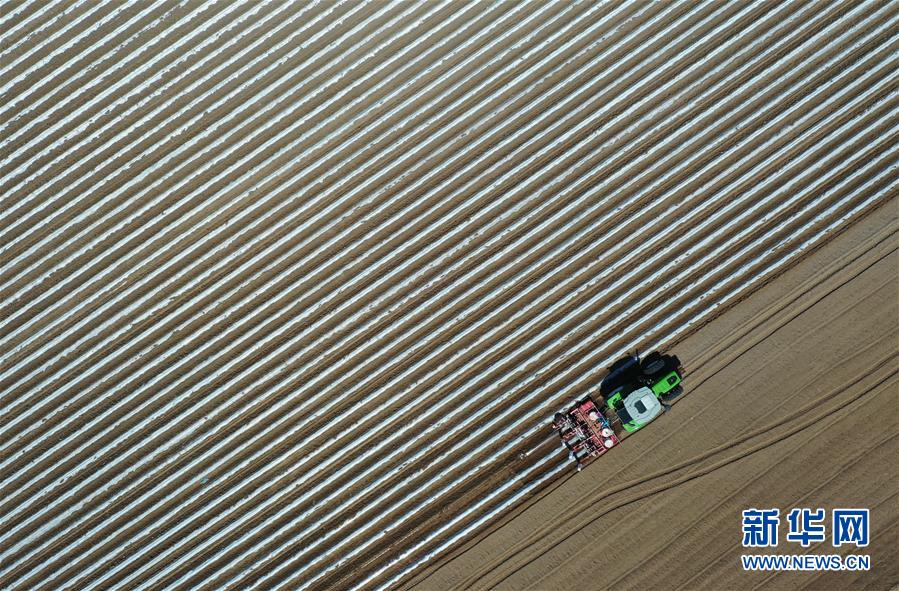 4月25日,灤南縣東黃坨鎮(zhèn)新戶村農(nóng)民使用拖拉機給準(zhǔn)備栽植煙薯秧苗的土地開溝覆膜(無人機照片)。近年來,河北省灤南縣利用當(dāng)?shù)赝寥篮蜌夂蛱攸c,引導(dǎo)農(nóng)民因地制宜發(fā)展煙薯種植,取得良好效果。目前該縣煙薯種植面積達3萬多畝,每畝年收入達5000多元。新華社記者楊世堯攝