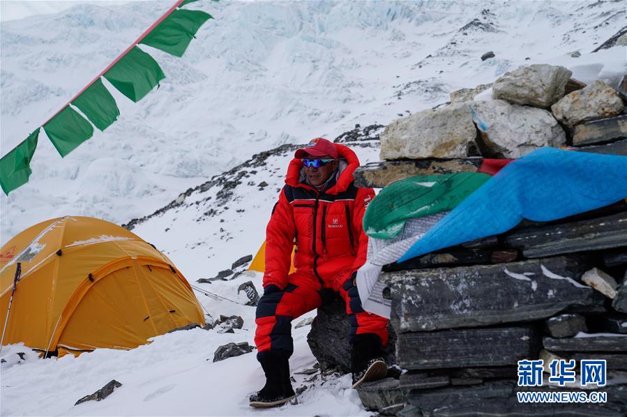 5月7日,2020珠峰高程測量登山隊進駐海拔6500米的前進營地。新華社特約記者扎西次仁攝