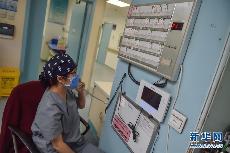 5月11日,在北京地壇醫(yī)院感染二科護(hù)士站,護(hù)士彭蒨接聽病房呼喚鈴電話。北京地壇醫(yī)院是北京市收治新冠肺炎患者的定點(diǎn)醫(yī)院之一,醫(yī)院的醫(yī)護(hù)人員一直奮戰(zhàn)在抗擊疫情的一線。在國際護(hù)士節(jié)前夕,記者前往北京地壇醫(yī)院,記錄下抗疫一線護(hù)士的日常工作狀態(tài)。新華社記者彭子洋攝