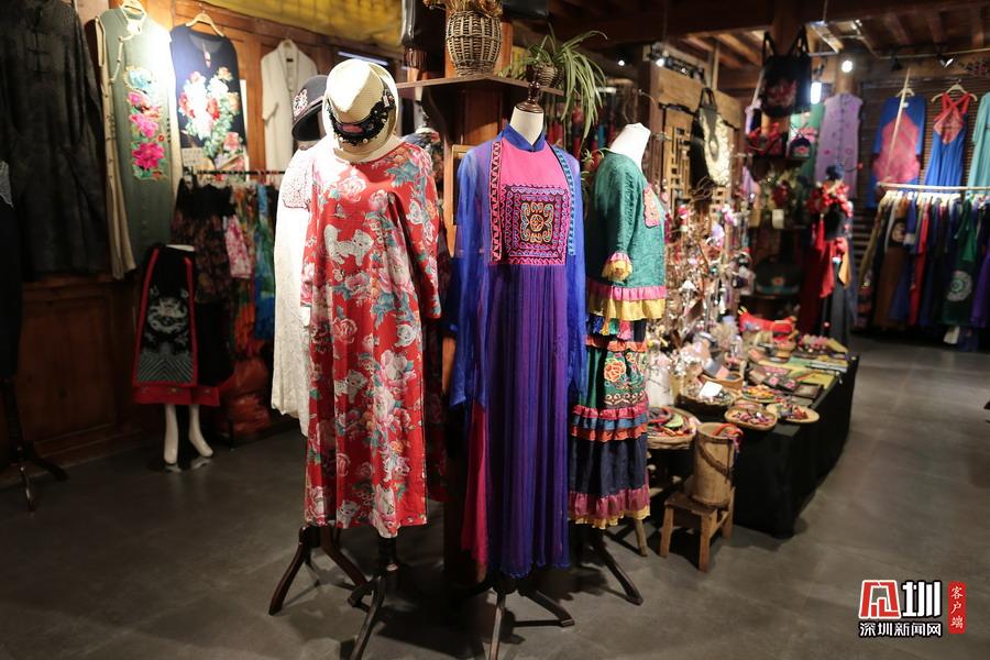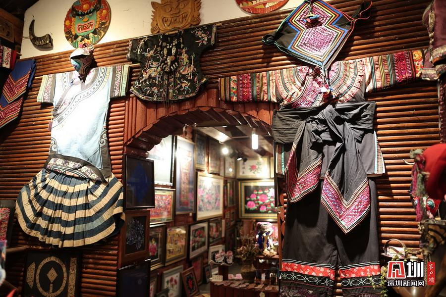 彝家公社內(nèi)陳列的彝族刺繡服飾。