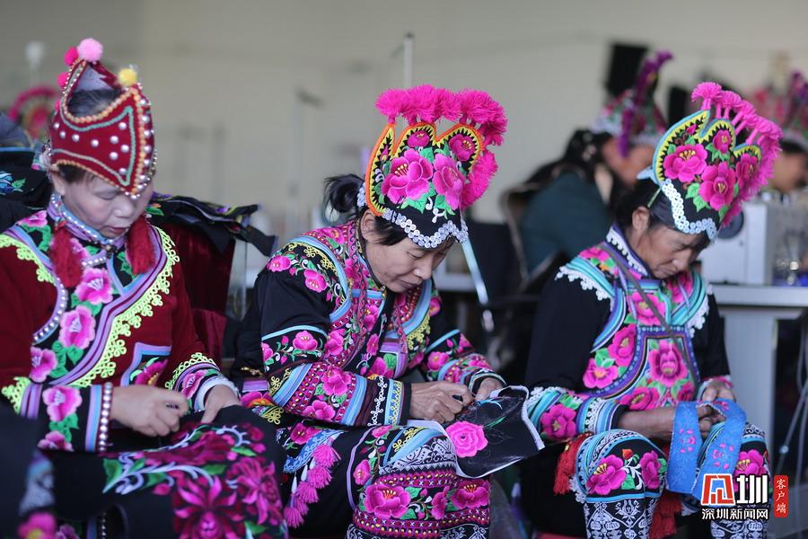 彝家公社簽約了七八千個(gè)繡娘,帶動(dòng)近7000多個(gè)貧困家庭脫貧、致富。2020年初拍攝。