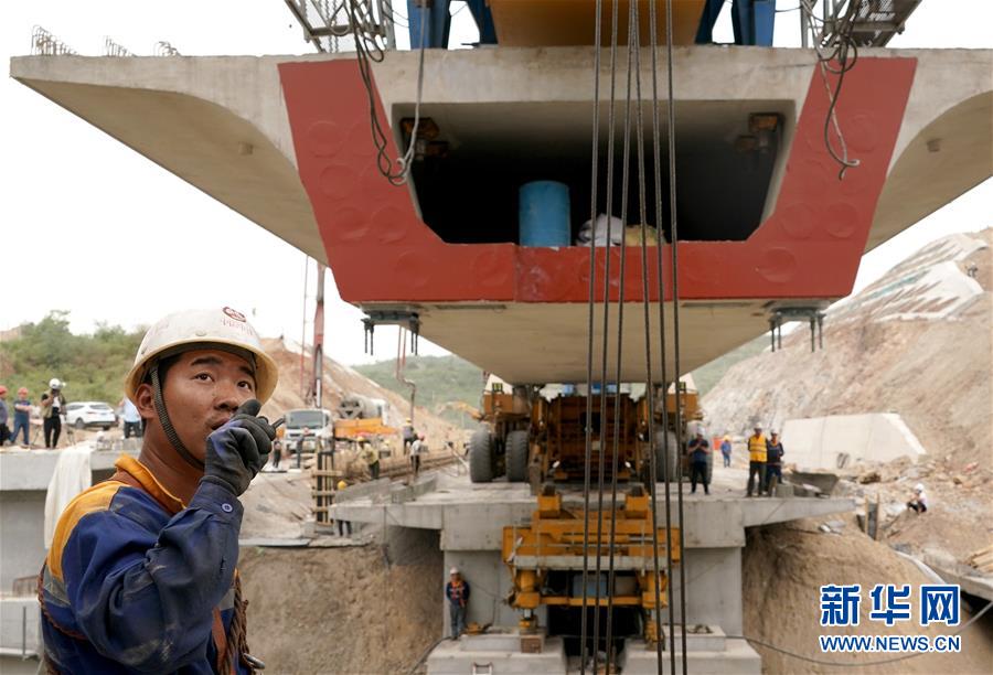 5月13日,中鐵七局的工作人員在位于河南焦作的施工現(xiàn)場(chǎng)指揮架梁作業(yè)。 當(dāng)日,隨著最后一榀長(zhǎng)24米、重552噸的箱梁架設(shè)就位,太焦高鐵全線(xiàn)橋梁架設(shè)完成。從山西太原到河南焦作的太焦高鐵是國(guó)家規(guī)劃建設(shè)的“八縱八橫”高速鐵路網(wǎng)的重要組成部分,計(jì)劃2020年底建成通車(chē)。 新華社記者李安攝