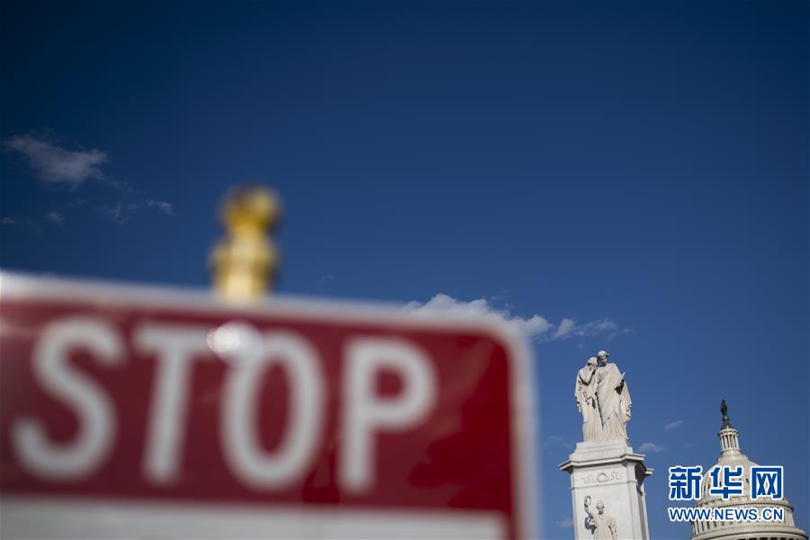 這是5月13日在美國華盛頓國會大廈附近拍攝的雕塑。新華社記者劉杰攝