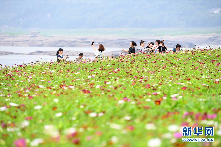 5月20日,在重慶市巴南區(qū)木洞鎮(zhèn)長(zhǎng)江岸邊,游客在格?;êV杏瓮妗=?,重慶市巴南區(qū)木洞鎮(zhèn)長(zhǎng)江岸邊的格?;ǜ?jìng)相開放,吸引游客前來(lái)賞花觀景。新華社記者唐奕攝