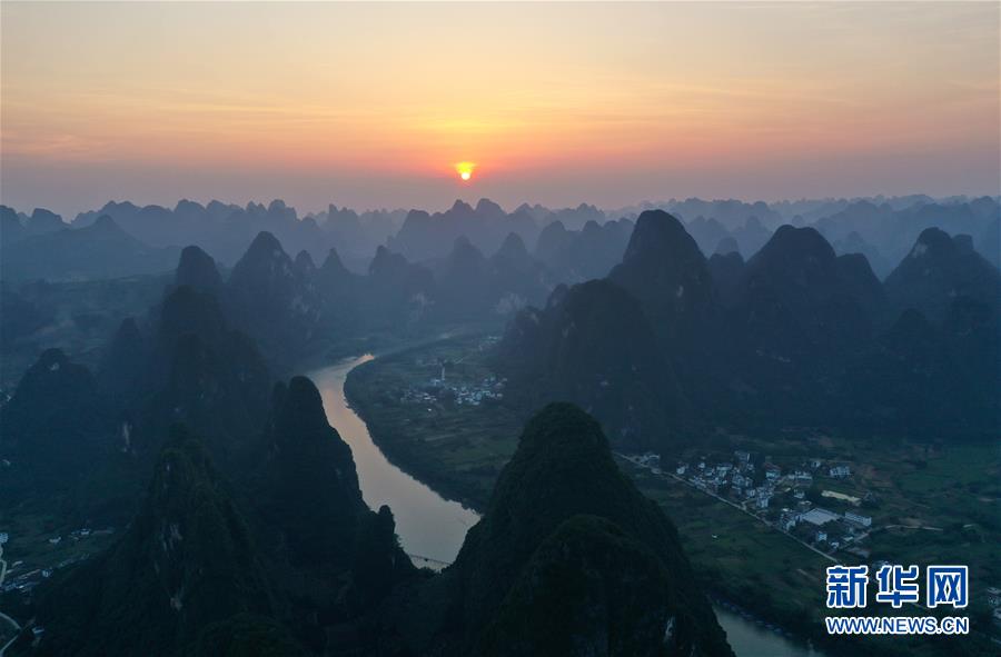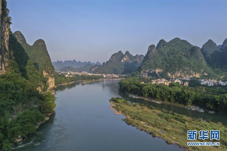 這是在廣西桂林市陽朔縣興坪鎮(zhèn)拍攝的山水風(fēng)光(5月21日攝,無人機(jī)全景照片)?!吧n蒼森八桂,茲地在湘南。江作青羅帶,山如碧玉篸……”一千多年前,唐朝詩(shī)人韓愈寫盡桂林山水之美。初夏時(shí)節(jié),在廣西桂林市陽朔縣興坪鎮(zhèn),藍(lán)天白云下,煙雨朦朧中,桂林山水盡顯秀美。新華社記者周華攝