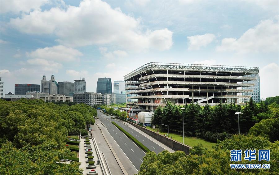 5月22日拍攝的建設(shè)中的上海圖書(shū)館東館(無(wú)人機(jī)照片)。 新華社記者 方喆 攝