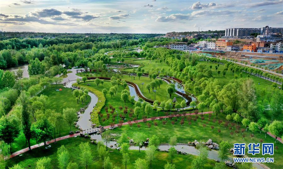 5月24日拍攝的榆林市榆溪河生態(tài)長廊(無人機(jī)照片)。新華社記者陶明攝
