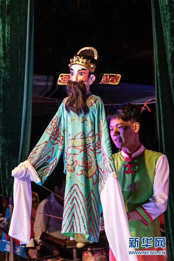5月24日,海南臨高新風(fēng)人偶戲團(tuán)的人偶在舞臺(tái)亮相。新華社記者張麗蕓攝