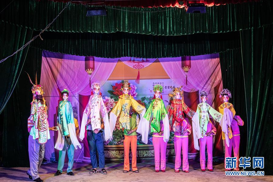 5月24日,海南臨高新風人偶戲團的人偶在舞臺亮相。新華社記者張麗蕓攝