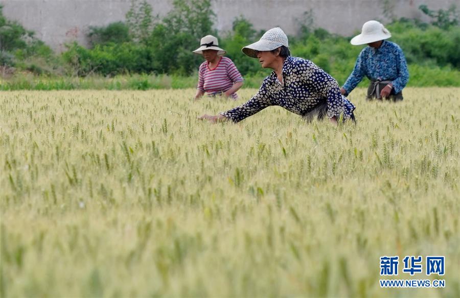 5月26日,農(nóng)民在內(nèi)丘縣東龐前街村麥田清理雜麥。夏日時節(jié),河北省邢臺市內(nèi)丘縣農(nóng)民搶抓農(nóng)時開展麥田后期管理,為小麥增產(chǎn)豐收打好基礎。新華社記者朱旭東攝