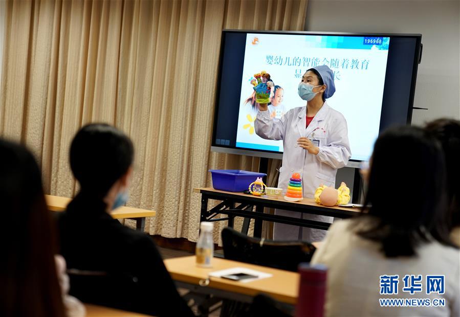 5月26日,中國福利會國際和平婦幼保健院健康教育科孕婦學(xué)校的醫(yī)生在上課。新華社記者 劉穎 攝