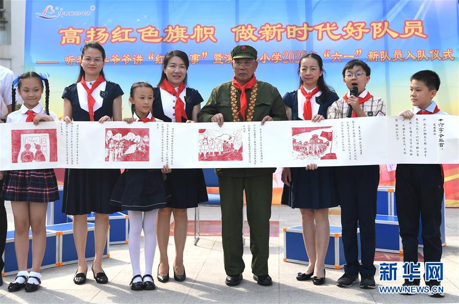 5月29日,孩子們向李延年贈(zèng)送“紅色畫卷”?!傲弧眹H兒童節(jié)來臨之際,“共和國勛章”獲得者、老一輩戰(zhàn)斗英雄李延年來到廣西南寧市濱湖路小學(xué)給孩子們講述戰(zhàn)爭(zhēng)年代的紅色故事,寄語他們好好學(xué)習(xí)、努力奮斗。孩子們向李延年贈(zèng)送了師生共繪的“紅色畫卷”,向老英雄致敬。新華社記者周華攝